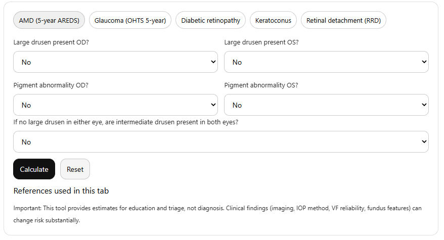Tools here are provided for educational and exploratory use and do not replace a comprehensive eye examination or individualized care.